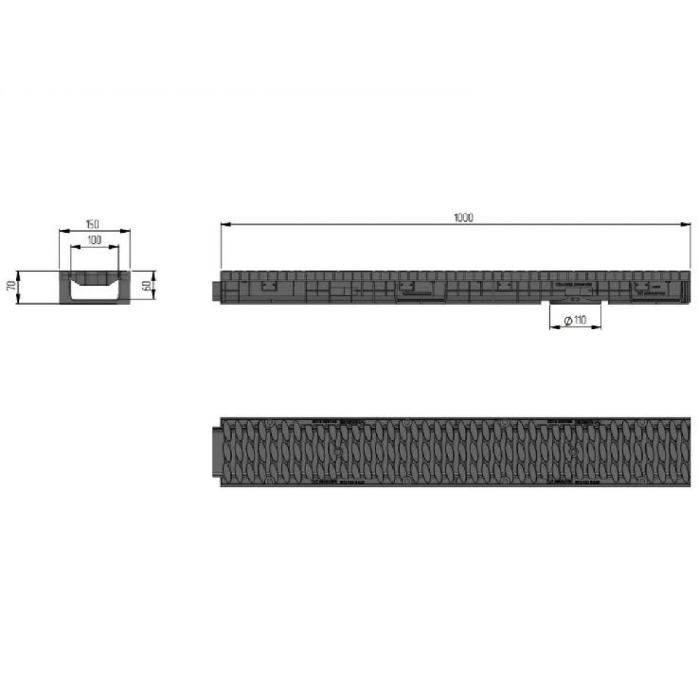 - Лоток водоотводный пластиковый ЛВП Мастер 100 H70 B125