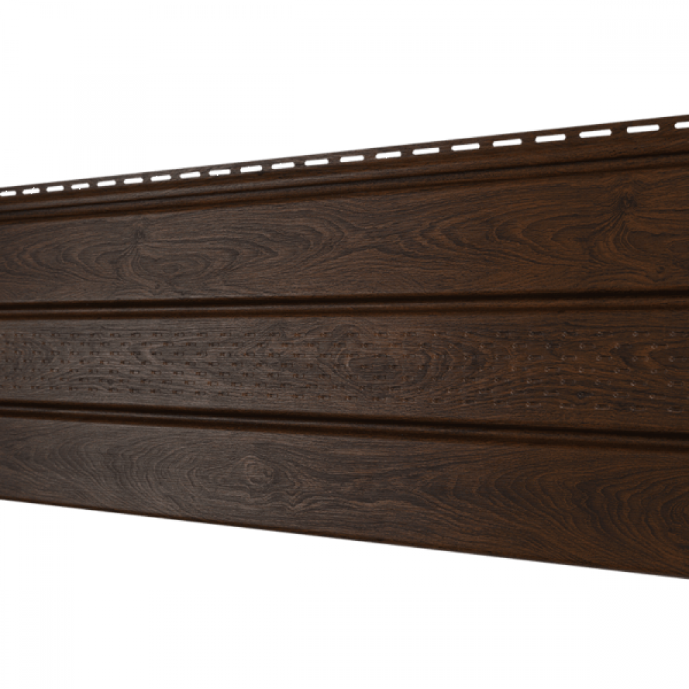 Софит перфорация по центру Орех тёмный , можно купить в интернет магазине Сайдинг-Маркет, от производителя Ю-Пласт. Доставим быстро и по всей России. Цена производителя. Все в наличии на складе и на заказ. Гарантия. Заходи — выбирай!